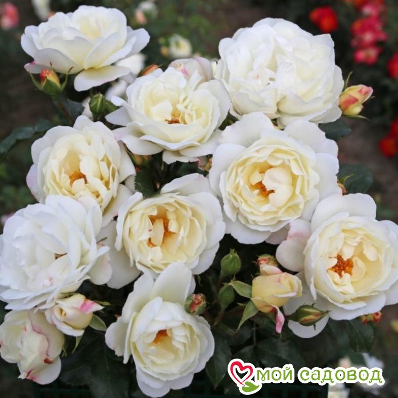 Роза Вайсе Вольке Этот сорт стремительно завоевал признание цветоводов. Выведен он в 1993 году в Германии. Роза Вайсе Вольке характеризуется длительным периодом цветения, нетребовательностью к условиям произрастания и прочими положительными характеристиками. Именно благодаря им растение стремится купить практически каждый розовод. Ботаническое описание Рассматриваемая цветочная культура выращивается как крупный шраб или невысокий клаймбер. Цветки чисто-белой окраски, полумахровые, с пучком золотистых тычинок. Обычно они собраны в кистевидные соцветия по 3 – 10 штук. Бутоны формируются на макушках побегов и на коротких боковых ветках (на прошлогодней древесине). Эта особенность обуславливает обильное цветение. Побеги крепкие, толстые и длинные. Листья крупные, тёмно-зелёные, с блестящей поверхностью. Высота взрослых саженцев зависит от региона, в котором они выращиваются. Например, в Австралии кусты достигают 5 м, а в Германии – не более 2 м. Применение Роза Вайсе Вольке так интенсивно разрастается, что за короткий период времени формирует плотную живую изгородь. Она достойно украсит любой участок. Однако нужно учитывать один момент: соцветия настолько обильные, что побеги под их весом могут поникать. Следовательно, потребуется посредством обрезки сформировать жёсткий каркас. В целом сорт гармонично смотрится не только в линейных, но и в групповых и сольных посадках. Агротехника Для посадки на участке лучше купить рассаду роз, выращенную в контейнерах. Она быстрее приживается на новом месте. В среднем на 1 м2 площади понадобится 3 – 4 кустика. Размещать их рекомендуется на хорошо освещённом участке, защищённом от сильных порывов ветра и холодных сквозняков. Желательно, чтобы клумба находилась на возвышенности, с глубоким залеганием почвенных вод. Земля предпочтительна рыхлая, суглинистая, с низким уровнем кислотности. Если она истощена, во время перекопки вносят перегной, золу и компост. Вайсе Вольке – неприхотливый шраб. Тем не менее, за растением нужно правильно ухаживать. Саженцы любят обильный полив, а также сезонные подкормки. Если лето жаркое и засушливое, то розы нужно поливать не меньше 1 раза с перерывом в 7 дней. Проводить процедуру слишком часто не желательно – это приводит к увяданию рассады. Также этот сорт один из самых устойчивых к заморозкам. Но молодые кустики всё же надо укрывать на зиму. В южных территориях можно окучить их почвой, взятой из междурядий. Если температура воздуха ещё больше снизится, достаточно подсыпать древесных опилок. В регионах с суровым зимним периодом помимо вышеописанных мер используют сухую листву или еловый лапник. В отдельные годы сорт Вайсе Вольке подвергается поражению чёрной пятнистости. Предотвратить развитие грибковой инфекции поможет профилактическая обработка медным купоросом (3% раствор). Проводить её нужно весной. А вот осенью в ход идёт 1% раствор железного купороса. Из вредителей розу атакует тля. Если насекомых мало, их можно собрать вручную. При массовом нашествии вредителя не обойтись без опрыскивания химическими препаратами (например, Карбофосом). Из народных средств хороший результат показывает раствор, приготовленный из воды и мыльной стружки. Преимущества розы Вайсе Вольке Среди многочисленных положительных качеств сорта выделяют следующие: рассада не